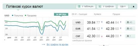 Сьогодні, 29 грудня, середній готівковий курс долара становить 40,44 гривні у продажу та 39,84 гривні в купівлі, а євро – 42,39 гривні у продажу та 41,51 гривні у купівлі.