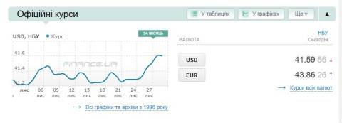 - долар – 41,59 гривні;