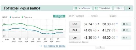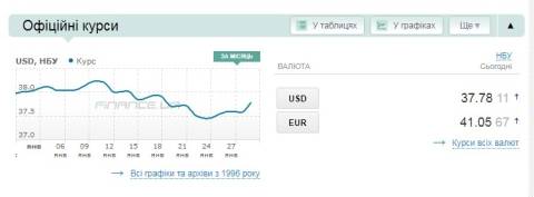 Сьогодні, 29 січня, середній готівковий курс долара становить 38,30 гривні у продажу та 37,74 гривні в купівлі, а євро – 41,77 гривні у продажу та 41,05 гривні у купівлі.