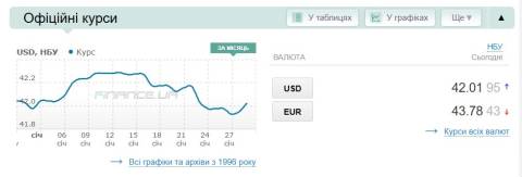 Сьогодні, 29 січня, середній готівковий курс долара становить 42,37 гривні у продажу та 41,78 гривні в купівлі, а євро – 44,42 гривні у продажу та 43,77 гривні у купівлі.