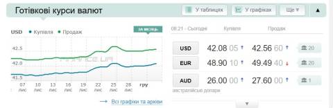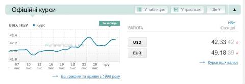 Сьогодні, 3 грудня, середній готівковий курс долара становить 42,56 гривні у продажу та 42,08 гривні в купівлі, а євро – 49,49 гривні у продажу та 48,90 гривні у купівлі.