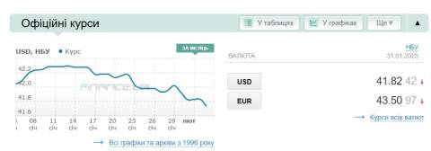 Сьогодні, 3 лютого, середній готівковий курс долара становить 42,07 гривні у продажу та 41,51 гривні в купівлі, а євро – 43,99 гривні у продажу та 43,34 гривні у купівлі.