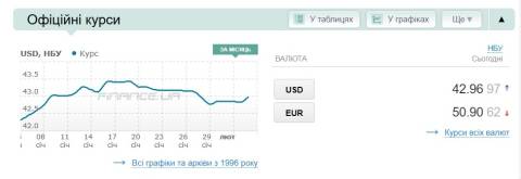 - долар – 42,96 гривні;