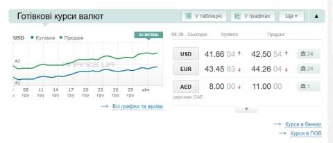 Сьогодні, 3 січня, середній готівковий курс долара становить 42,50 гривні у продажу та 41,86 гривні в купівлі, а євро – 44,26 гривні у продажу та 43,45 гривні у купівлі.