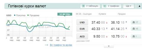 Сьогодні, 30 березня, середній готівковий курс долара становить 38,10 гривні у продажу та 37,40 гривні в купівлі, а євро – 41,14 гривні у продажу та 40,33 гривні у купівлі.