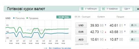 Сьогодні, 30 січня, середній готівковий курс долара становить 40,61 гривні у продажу та 39,93 гривні в купівлі, а євро – 43,68 гривні у продажу та 42,73 гривні у купівлі.