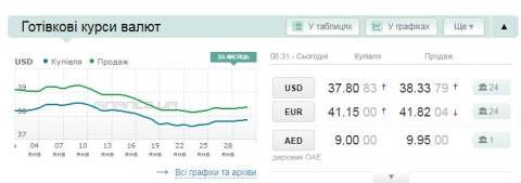 Сьогодні, 30 січня, середній готівковий курс долара становить 38,33 гривні у продажу та 37,80 гривні в купівлі, а євро – 41,82 гривні у продажу та 41,15 гривні у купівлі.