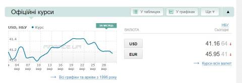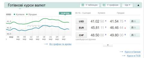 Сьогодні, 30 вересня, середній готівковий курс долара становить 41,54 гривні у продажу та 41,02 гривні в купівлі, а євро – 46,46 гривні у продажу та 45,81 гривні у купівлі.