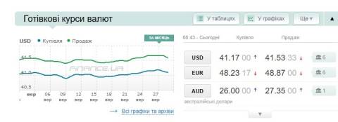 Сьогодні, 30 вересня, середній готівковий курс долара становить 41,53 гривні у продажу та 41,17 гривні в купівлі, а євро – 48,87 гривні у продажу та 48,23 гривні у купівлі.