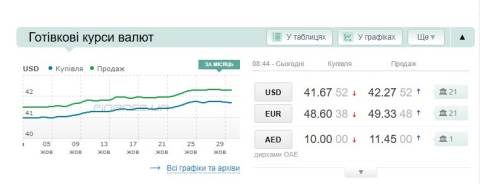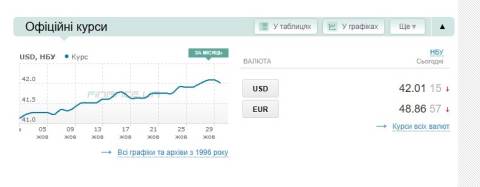 Сьогодні, 30 жовтня, середній готівковий курс долара становить 42,27 гривні у продажу та 41,67 гривні в купівлі, а євро – 49,33 гривні у продажу та 48,60 гривні у купівлі.