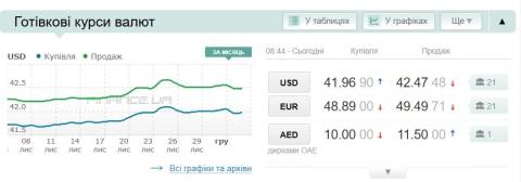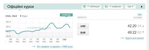 Сьогодні, 4 грудня, середній готівковий курс долара становить 42,47 гривні у продажу та 41,96 гривні в купівлі, а євро – 49,49 гривні у продажу та 48,89 гривні у купівлі.