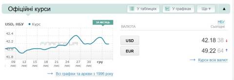 Сьогодні, 5 грудня, середній готівковий курс долара становить 42,40 гривні у продажу та 41,91 гривні в купівлі, а євро – 49,50 гривні у продажу та 48,88 гривні у купівлі.