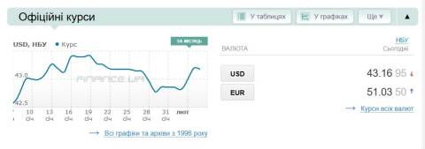 - долар – 43,16 гривні;