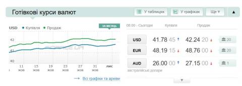 Сьогодні, 5 листопада, середній готівковий курс долара становить 42,24 гривні у продажу та 41,78 гривні в купівлі, а євро – 48,76 гривні у продажу та 48,19 гривні у купівлі.