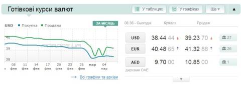 Сьогодні, 6 березня, середній готівковий курс долара становить 39,23 гривні у продажу та 38,44 гривні в купівлі, а євро – 41,32 гривні у продажу та 40,48 гривні у купівлі.
