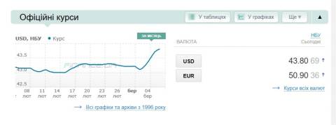 - долар – 43,80 гривні;