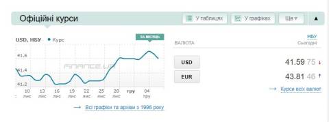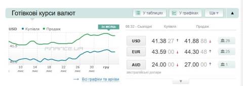 Сьогодні, 6 грудня, середній готівковий курс долара становить 41,88 гривні у продажу та 41,38 гривні в купівлі, а євро – 44,30 гривні у продажу та 43,59 гривні у купівлі.
