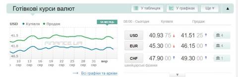 Сьогодні, 6 вересня, середній готівковий курс долара становить 41,51 гривні у продажу та 40,93 гривні в купівлі, а євро – 46,15 гривні у продажу та 45,30 гривні у купівлі.
