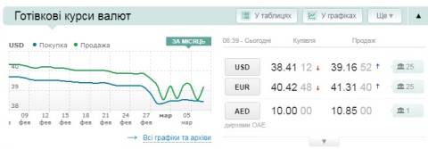 Сьогодні, 7 березня, середній готівковий курс долара становить 39,16 гривні у продажу та 38,41 гривні в купівлі, а євро – 41,31 гривні у продажу та 40,42 гривні у купівлі.