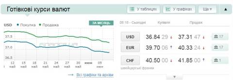 Сьогодні, 7 червня, середній готівковий курс долара становить 37,31 гривні у продажу та 36,84 гривні в купівлі, а євро – 40,33 гривні у продажу та 39,70 гривні у купівлі.