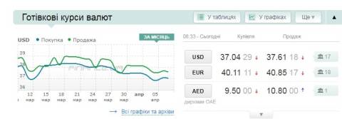 Сьогодні, 7 квітня, середній готівковий курс долара становить 37,61 гривні у продажу та 38,04 гривні в купівлі, а євро – 40,85 гривні у продажу та 40,11 гривні у купівлі.