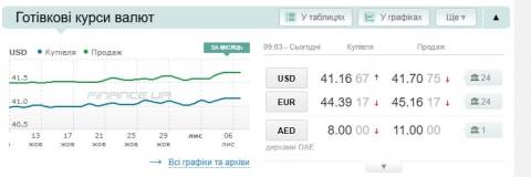 Сьогодні, 7 листопада, середній готівковий курс долара становить 41,70 гривні у продажу та 41,16 гривні в купівлі, а євро – 44,39 гривні у продажу та 45,16 гривні у купівлі.