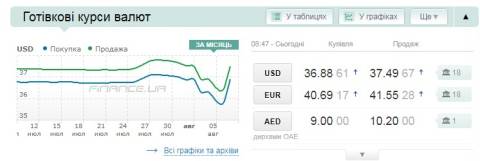 Сьогодні, 7 серпня, середній готівковий курс долара становить 37,49 гривні у продажу та 36,88 гривні в купівлі, а євро – 41,55 гривні у продажу та 40,69 гривні у купівлі.