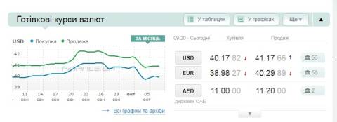 Сьогодні, 7 жовтня, середній готівковий курс долара становить 41,17 гривні у продажу та 40,17 гривні в купівлі, а євро – 40,29 гривні у продажу та 38,98 гривні у купівлі.