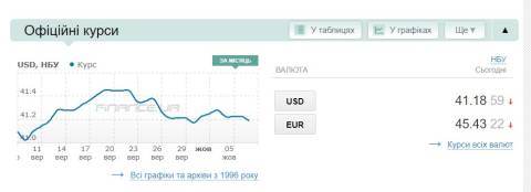 Сьогодні, 7 жовтня, середній готівковий курс долара становить 41,50 гривні у продажу та 41,05 гривні в купівлі, а євро – 45,91 гривні у продажу та 45,29 гривні у купівлі.