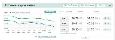 Сьогодні, 8 червня, середній готівковий курс долара становить 37,27 гривні у продажу та 36,76 гривні в купівлі, а євро – 40,32 гривні у продажу та 39,61 гривні у купівлі.