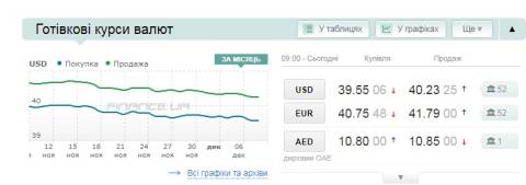 Сьогодні, 8 грудня, середній готівковий курс долара становить 40,23 гривні у продажу та 39,55 гривні в купівлі, а євро – 41,79 гривні у продажу та 40,75 гривні у купівлі.