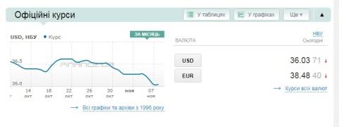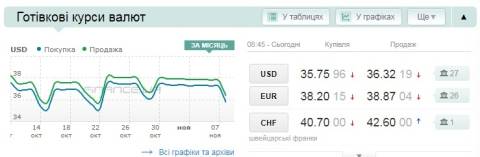 Сьогодні, 8 листопада, середній готівковий курс долара становить 36,32 гривні у продажу та 35,75 гривні в купівлі, а євро – 38,87 гривні у продажу та 38,20 гривні у купівлі.