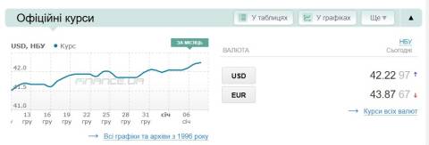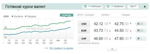 Сьогодні, 8 січня, середній готівковий курс долара становить 42,75 гривні у продажу та 42,12 гривні в купівлі, а євро – 44,50 гривні у продажу та 43,73 гривні у купівлі.