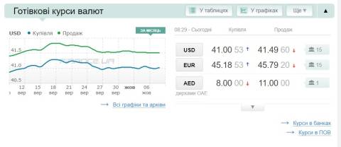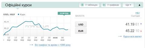 Сьогодні, 8 жовтня, середній готівковий курс долара становить 41,49 гривні у продажу та 41,00 гривні в купівлі, а євро – 45,75 гривні у продажу та 45,18 гривні у купівлі.