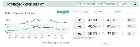 Сьогодні, 9 грудня, середній готівковий курс долара становить 42,38 гривні у продажу та 41,89 гривні в купівлі, а євро – 49,40 гривні у продажу та 48,84 гривні у купівлі.