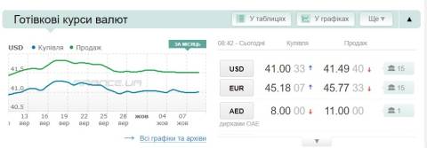 Сьогодні, 9 жовтня, середній готівковий курс долара становить 41,49 гривні у продажу та 41,00 гривні в купівлі, а євро – 45,77 гривні у продажу та 45,18 гривні у купівлі.