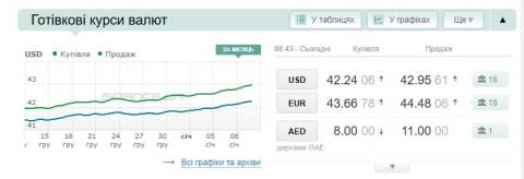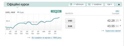 Сьогодні, 10 січня, середній готівковий курс долара становить 42,95 гривні у продажу та 42,24 гривні в купівлі, а євро – 44,48 гривні у продажу та 43,66 гривні у купівлі.