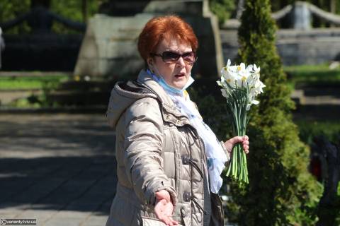 Поволі святе місце Пагорбу слави починає сповняти знайомий запах та дух русского міра. Чужі тут не ходять, але знайомі обличчя з ветеранських та комуністичних організацій Львова й нині змушені шифруватися під масками. Окрім російськомовних паролів майже всіх цих персонажів єднає кохання у радянських фасонах одягу та взуття. Їхні характерні обличчя внутрішнього екзилу пройняті бомжуватими знаками підпільного гетто, яке відкриває свої брами лише раз у рік на 9 травня. Дивний симбіоз комуністичного та православного у цьому фасонному трепеті змушує вагатися між полум'яною любов'ю до найкращої колись країни у світі та аскезою християнського упокорення.
