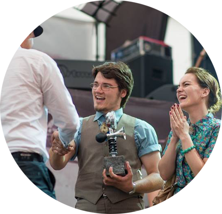 Конкурс полягав у тому, щоб екіпаж автомобіля вдягнувся в одяг епохи, з якої цей автомобіль. Ми зайняли перше місце. Це маленька перемога для нас і Трабанту!