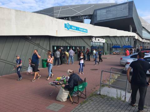 По-друге, каси обслуговували своїх клієнтів якісно і швидко. За це їм добрячий респект. Також одразу неподалік кас можна зарядити свій електромобіль. Якщо маєте такий, то майте на увазі. За такі підзарядки можете подякувати компанії (за рекламу не платила), що розташовується у приміщенні, де колись був фан-шоп Шахтаря. Рухаємось далі. Які ж футбольні баталії без перекусу. Вибір їжі, який у фудкортах стадіону не надто широкий, впав на чіабату. Ціни, одразу скажу, кусючі. Проте це нікого не відлякує. Щоб ви розуміли вищезгадана чіабата і півлітрова Pepsi обійдуться вам дорожче, ніж квиток у центральний сектор. До слова, така перепустка на матч вартувала вам б у 50 гривень.
