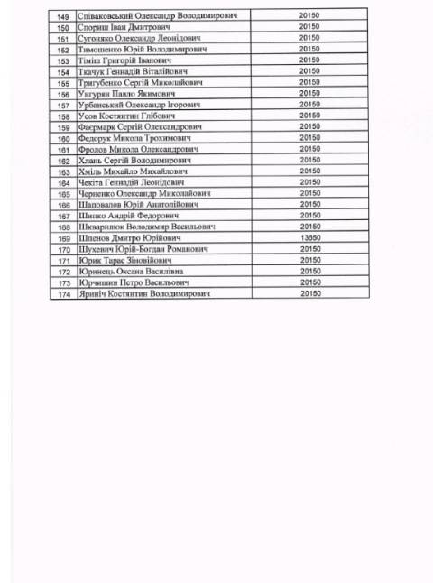 Щодо народних депутатів, які пройшли у Верховну Раду від Львівщини, то компенсацію за житло отримали: Андрій Антонищак (Блок Петра Порошенка), Тарас Батенко (позафракційний), Олег Березюк (Самопоміч), Михайло Бондар (Народний фронт), Микола Величкович (Народний фронт), Дмитро Добродомов (позафракційний), Остап Єднак (позафракційний), Любомир Зубач (Самопоміч), Наталія Кацер-Бучковська (Народний фронт), Микола Кадикало (Народний фронт), Сергій Кіраль (Самопоміч), Андрій Кіт (Блок Петра Порошенка), Богдан Матківський (позафракційний), Олег Мусій (позафракційний), Володимир Парасюк (позафракційний), Андрій Парубій (позафракційний), Ірина Подоляк (Самопоміч), Лев Підлісецький (Самопоміч), Олексій Скрипник (Самопоміч), Руслан Сидорович (Самопоміч), Михайло Хміль (Народний фронт), Юрій Шухевич (Радикальна партія Олега Ляшка), Оксана Юринець (Блок Петра Порошенка).