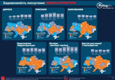Зокрема, порівняно із 2019 роком ставлення мешканців до якості паркування, стану тротуарів, закладів торгівлі та доріг залишилися без змін, однак покращилися показники щодо транспортної інфраструктури та доступу для людей із інвалідністю.