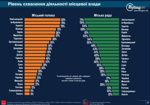 Міського голову Львова підтримують 45% львів'ян, а міську раду – 40%. За цими показниками, Львів опинився на 14 місці серед усіх обласних центрів України.
