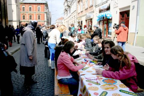 Сьогодні на вул. Галицькій триває майстер-клас з розмальовування писанок у рамках Фестивалю писанки, біля церков довжелезні черги людей, які хочуть поцілувати плащаницю, а на проспекті Свободи триває Великодній ярмарок.