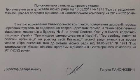 Згідно з змінами, дію програми, яка завершилась у 2022 році, продовжили ще на два роки, до 2024 року. Програма передбачає викуп Львівською міськрадою у власників квартир на площі Святого Юра для повернення церковній громаді УГКЦ.