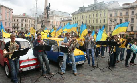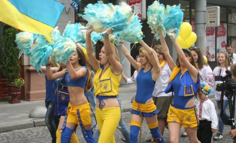 Сьогодні вулицями Львова пройшов парад на підтримку української збірної з футболу під час матчу із збірною Франції.