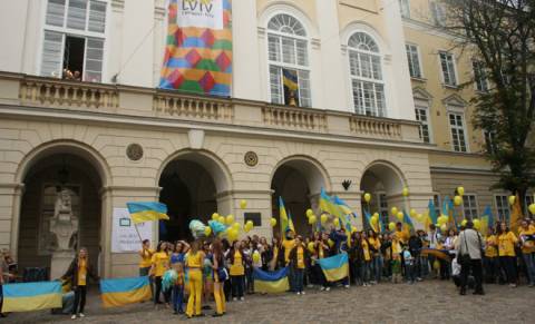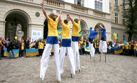 Від площі Міцкевича парад рушив на площу Ринок, де відбувся символічний матч між збірними України та Франції. В ролі футболістів виступали актори на ходулях. Перемогла звичайно ж Україна.