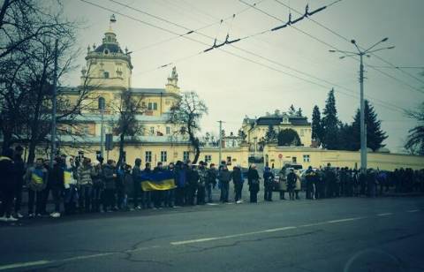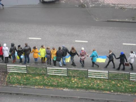 У Львові мітингувальники розпочали формувати живий євроланцюг.