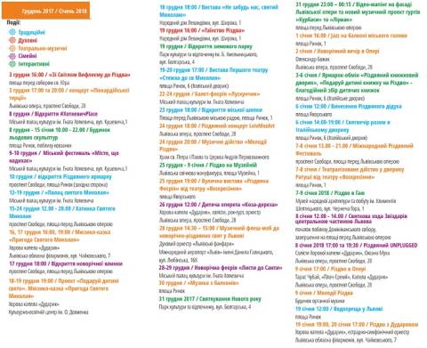Варіанти подають повну програму новорічно-різдвяних святкувань у Львові: