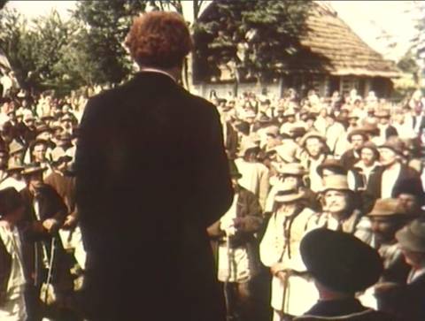 Революційне преображення світу від сина коваля (який несе хреста на собі), цього галицького голосу світового пролетаріату, у своїх пророчих думках продовжує справу Тараса Шевченка у фільмі 1951 року (а також цитує Пушкіна, свого старшого брата з далекої Абіссинії). Спочатку портрет батька Тараса ще можна побачити за спиною Франка, але згодом Іван Якович остаточно закриває його своєю широкою спиною. Він також полум'яно закликає різати панів, щоб кров текла рікою, і режисер особливо намагається увиразнити цей запал Франка справжнім вогнем за його плечима таким собі лукавим чортиком (див. образ Прометея у фільмі про Сковороду).